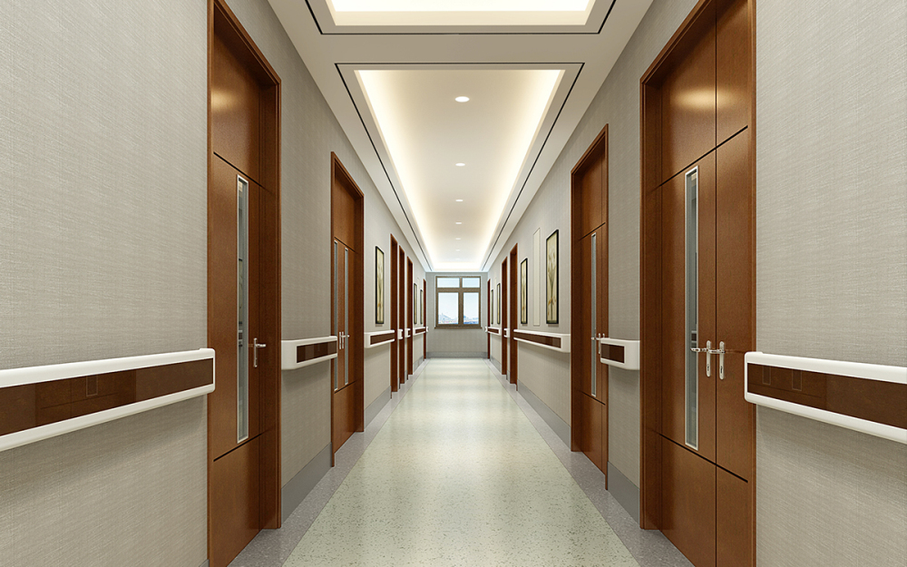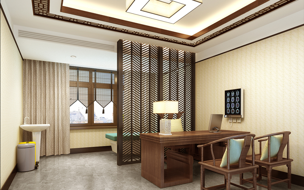 老年人普遍內心念舊保守,并且主要康復治療均偏向傳統的中醫治療,所以在風格上應側重中式風格。但是老年人視力較弱,在設計中不宜大面積采用重色調,影響行動,并且轉角處應設弧形轉角,不宜采用直角,容易碰撞。